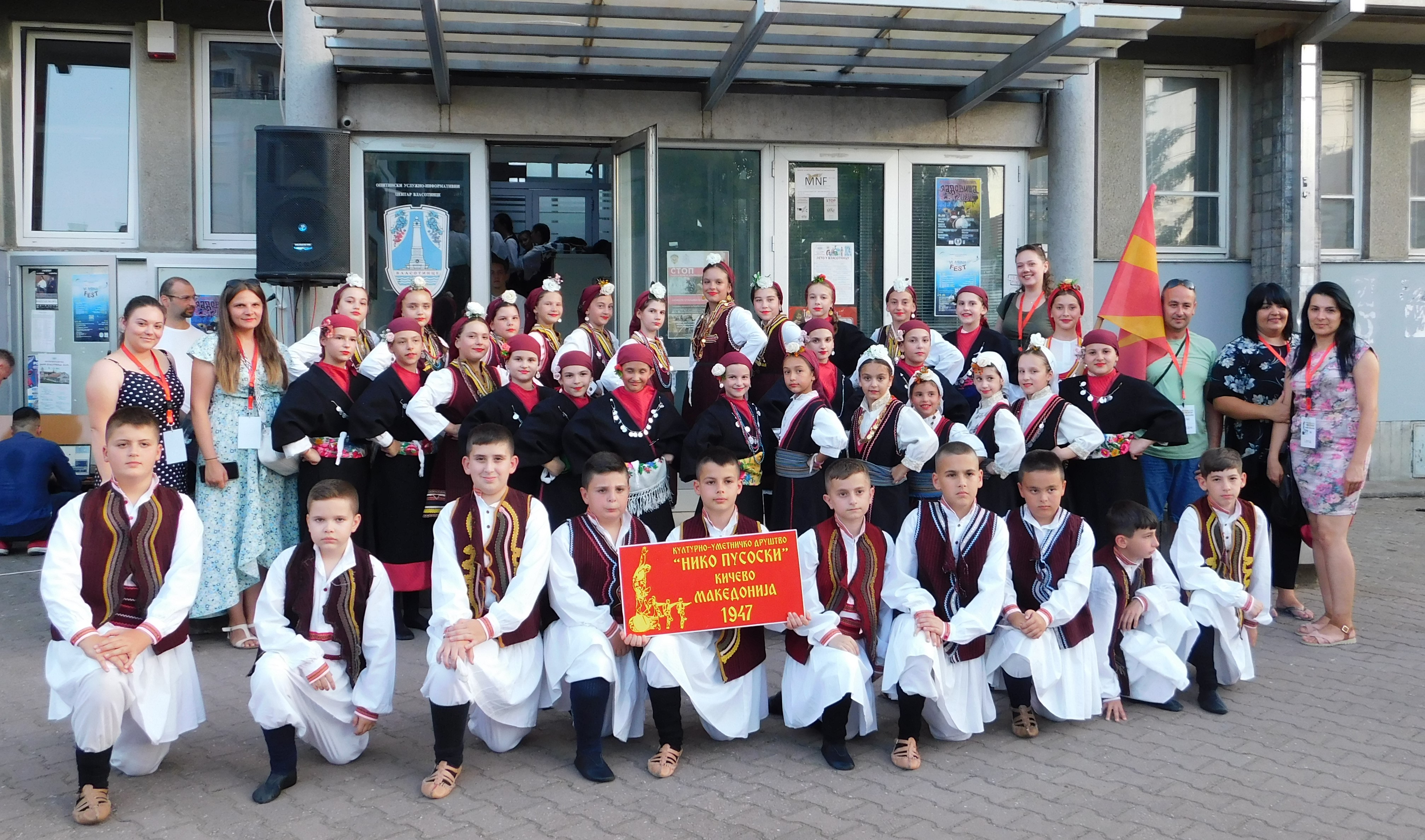 Гости Власотинца и Културног центра из Северне Македоније су чланови КУД „Нико Пусоски“ из Кичева. Они су синоћ наступали под руководством кореографа Сање Николовске и Марјана Јованоског. Синоћ су наступили и чланови културно-уметничких друштава „“Црниловић“ из Власотинца и „Света Тројица“ из Бољара, а вечерас ће им се на сцени придружити и чланови КУД „Братство“.