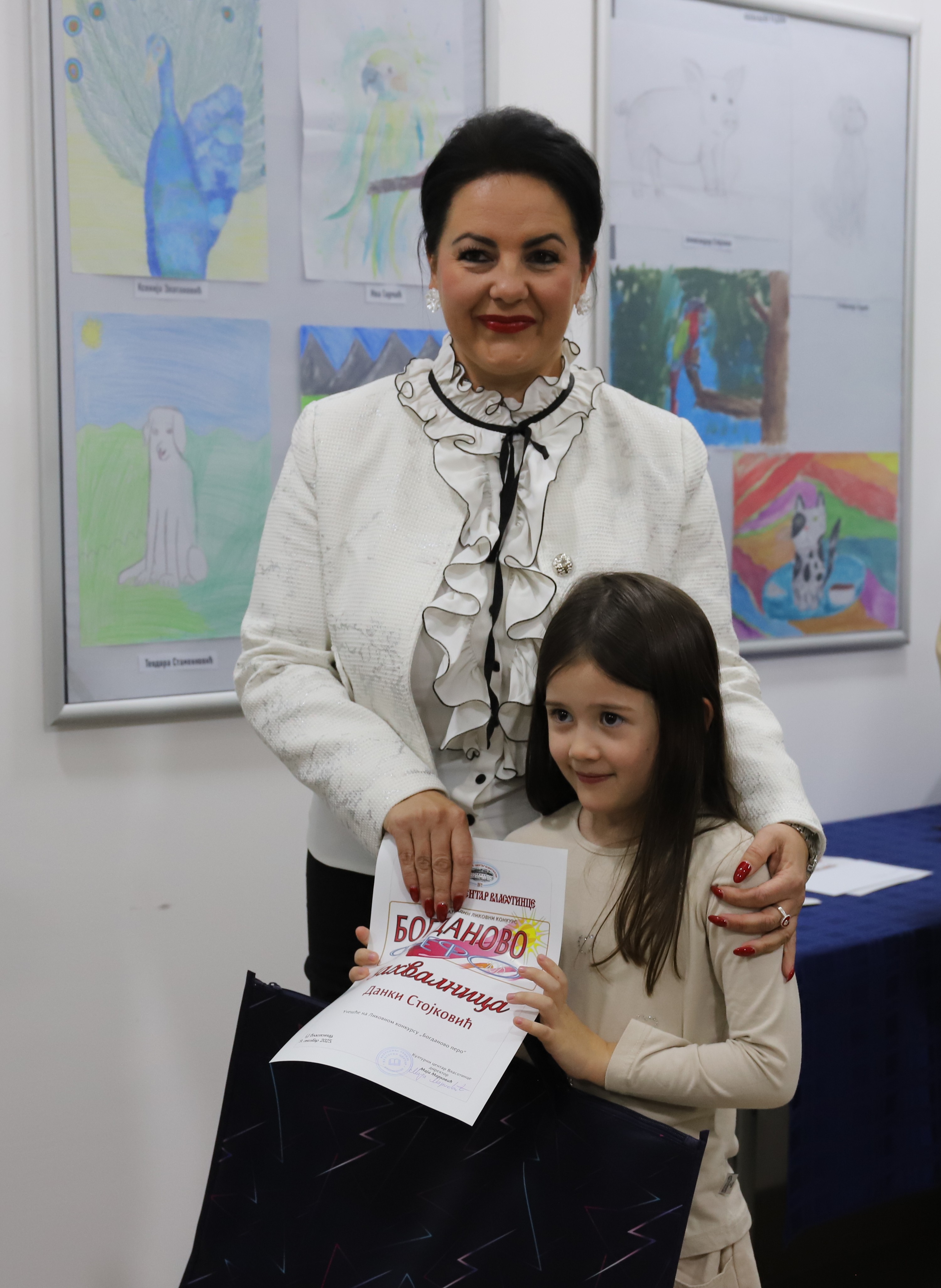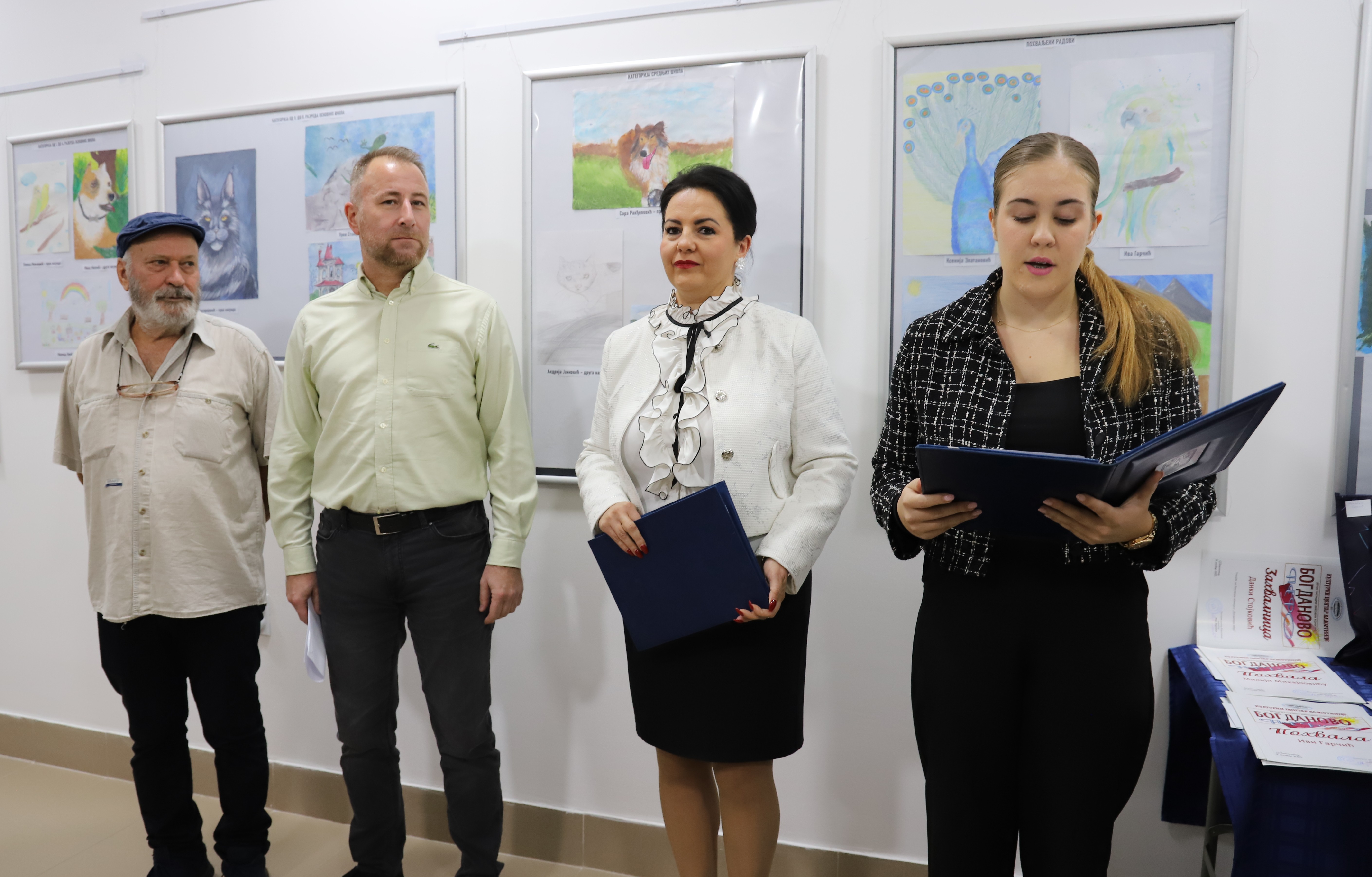 „Ликовни конкурс „Богданово перо“ проистекао је из једне немерљиве трагедије и прерастао у манифестацију којом се чува сећање на седмогодишњег дечака који није више са нама. Овај конкурс окупља најдаровитије ученике основних и средњих школа у нашој општини. На вечерашњој изложби имамо и посебно драгоцен цртеж, рад малог Огњена Коцића, који сада са Богданом небеским бојама боји далека пространства. Хвала храброј мајци Силвији Коцић која је својим изузетним гестом увеличала вечерашњу изложбу“, истакла је Маја Марковић, директорка Културног центра и захвалила се свим учесницима конкурса, њиховим учитељима, наставницима и родитељима.
