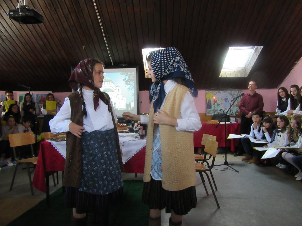 Кроз колажни програм присутни су се подсетили на дух и дело Светог Саве, на његов значај за српски народ и српску историју. Програм је почео Химном Светом Сави, коју је извео хор школе. Потом су се ученици представили рециталом и драмским приказом који је присутнима дочарао обичаје везане за крсну славу. Колико је програм био интересантан говори и громки апалауз који је након завршетка трајао неколико минута.